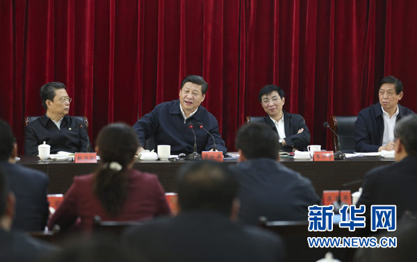 3月17日至18日,中共中央總書記、國家主席、中央軍委主席習近平在河南省蘭考縣調(diào)研指導黨的群眾路線教育實踐活動。這是3月18日,習近平聽取蘭考縣教育實踐活動情況匯報,并發(fā)表重要講話。(新華社記者 丁林 攝)