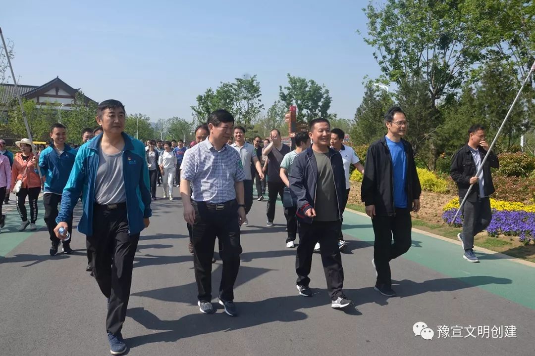 “最美人間四月天”,春暖花開,為倡導(dǎo)健康生活、快樂工作,鼓勵(lì)部機(jī)關(guān)干部職工積極參加戶外體育鍛煉,4月28日,省委宣傳部機(jī)關(guān)在鄭州園博園開展“新時(shí)代新征程 活力健康伴我行”健步走活動(dòng)。常務(wù)副部長(zhǎng)蘇長(zhǎng)青同志、省文明辦專職副主任王飛同志、省委網(wǎng)信辦副主任蔡新民同志、副巡視員趙鋼同志與90多名干部職工共同參加了本次活動(dòng)。鄭州市委宣傳部、鄭州航空港實(shí)驗(yàn)區(qū)管委會(huì)、鄭州園博園管理中心的干部職工也積極加入了本次健步走活動(dòng)。